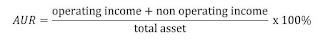Asset utillization ratio merupakan rasio untuk mengukur kemampuan bank memanfaatkan aktiva yang dikuasainya guna memperoleh total pendapatan. Rumus dari rasio ini ialah :